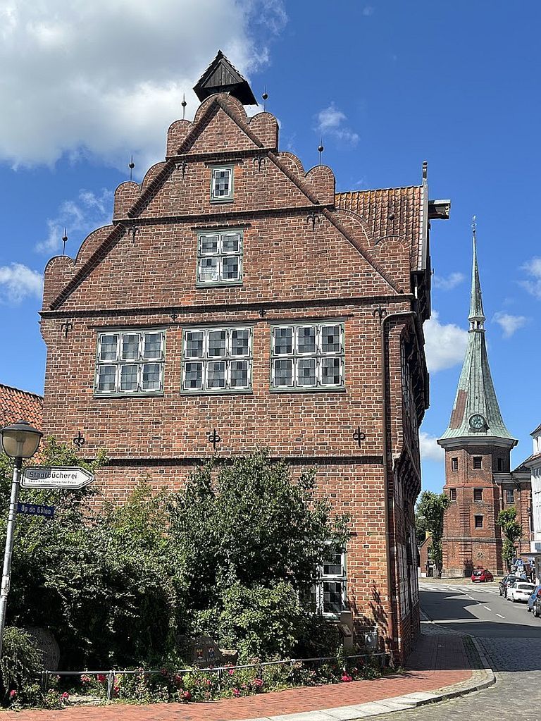 Das Alte Rathaus in Wilster, ein prächtiges Renaissance-Bauwerk aus dem Jahr 1585, prägt die Architekturlandschaft Holsteins. Nach einer umfassenden Sanierung von 1990 bis 1998 erstrahlt es in neuem Glanz und erzählt Geschichten aus vergangenen Zeiten. Bis 1829 diente es als städtische Verwaltung, später sogar als Gefängnis und Notunterkunft nach dem Zweiten Weltkrieg. Heute ist es ein lebendiges Kulturzentrum, das Besucher zu Führungen und Veranstaltungen einlädt. Im Inneren offenbart das Alte Rathaus eine Fülle von historischen Schätzen. Die "Wilstermarschstube" im Erdgeschoss mit ihrer kunstvoll geschnitzten Holztäfelung und den blauen Delfter Fliesen gewährt einen Einblick in die 200 Jahre alte Wohnkultur der Wilstermarsch. Im Obergeschoss liegt der prunkvolle Festsaal und die Gerichtsstube, in der einst Recht gesprochen wurde. Hier sind auch die wertvollen Bücher der Etatsrätin Doos untergebracht, eine beeindruckende "Bibliothek aus der Goethezeit" mit 2.700 Büchern aus den verschiedensten Wissensgebieten. Das Dachgeschoss beherbergt weitere 1.700 wertvolle Bücher, eine großzügige Schenkung des Kaufmanns Gustavus Witt-Warstede, dessen Vorfahren aus der Wilstermarsch stammten.