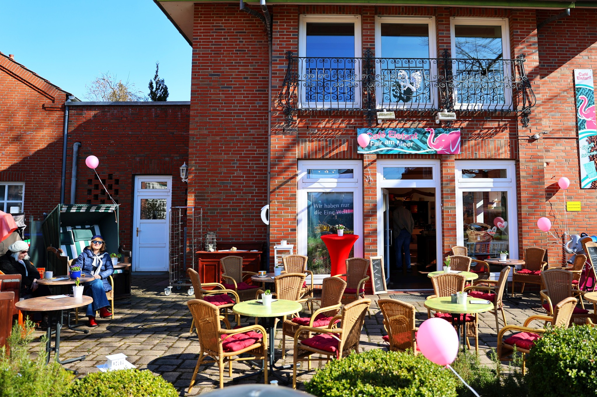Ob auf der Terrasse, im Strandkorb oder im gemütlichen Innenbereich – das Café bietet einen entspannten Ort zum Verweilen. Besonders ist auch der angeschlossene Verkaufsbereich mit plastikfreien, fair gehandelten und recycelten Produkten, darunter stilvolles Geschirr und handgefertigte Taschen aus einem Flüchtlingsprojekt auf Lesbos.