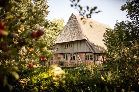 Die Dunkersche Kate, ein malerisches Fachwerkhaus aus dem 17. Jahrhundert, versteckt sich in der ländlichen Idylle Schleswig-Holsteins. Mit ihrem charmanten Reetdach und dem idyllischen Bauerngarten ist sie ein stilles Zeugnis vergangener Zeiten, in denen Schmiedemeister, Leinenweber und Bauern hier lebten und arbeiteten. Heute ist sie neben Kirchen und Schlössern ein beliebtes Ausflugsziel und bietet regionalen Künstlern und Manufakturen eine Plattform für wechselnde Kunstausstellungen und Kunsthandwerkermärkte. Ein Spaziergang durch den liebevoll gepflegten Katengarten, umgeben von regional typischen Buchsbäumen, lässt die Seele zur Ruhe kommen. Ein kleiner überdachter Picknickplatz lädt zu einer wohlverdienten Pause ein. Ein besonderes Highlight ist das historische Backhaus im Garten. Hier kann man das Brotbacken wie in alten Zeiten im Holzbackofen erleben. Ein Duft, der Erinnerungen weckt und die Sinne betört. Die Dunkersche Kate kann im Rahmen der Führung "Kirche & Dorf" besichtigt werden. Ein Besuch lohnt sich zu jeder Jahreszeit, denn die Kate und ihr Garten zeigen sich in ständigem Wandel und immer wieder von einer neuen, faszinierenden Seite.