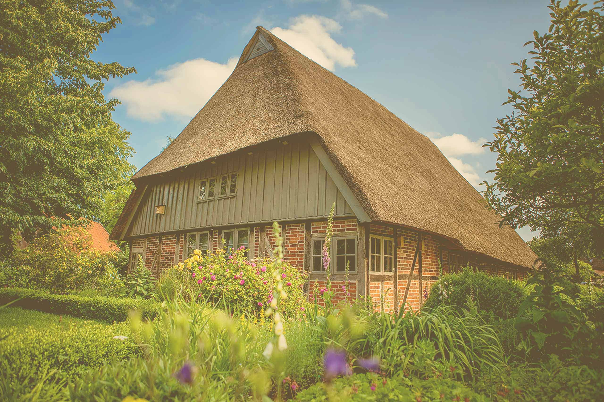 Die Dunkersche Kate ist ein malerisches Fachwerkhaus aus dem 17. Jahrhundert in Schleswig-Holstein. Hier kann regionale Kunst, historisches Brotbacken und ein idyllischer Bauerngarten erlebt werden.
