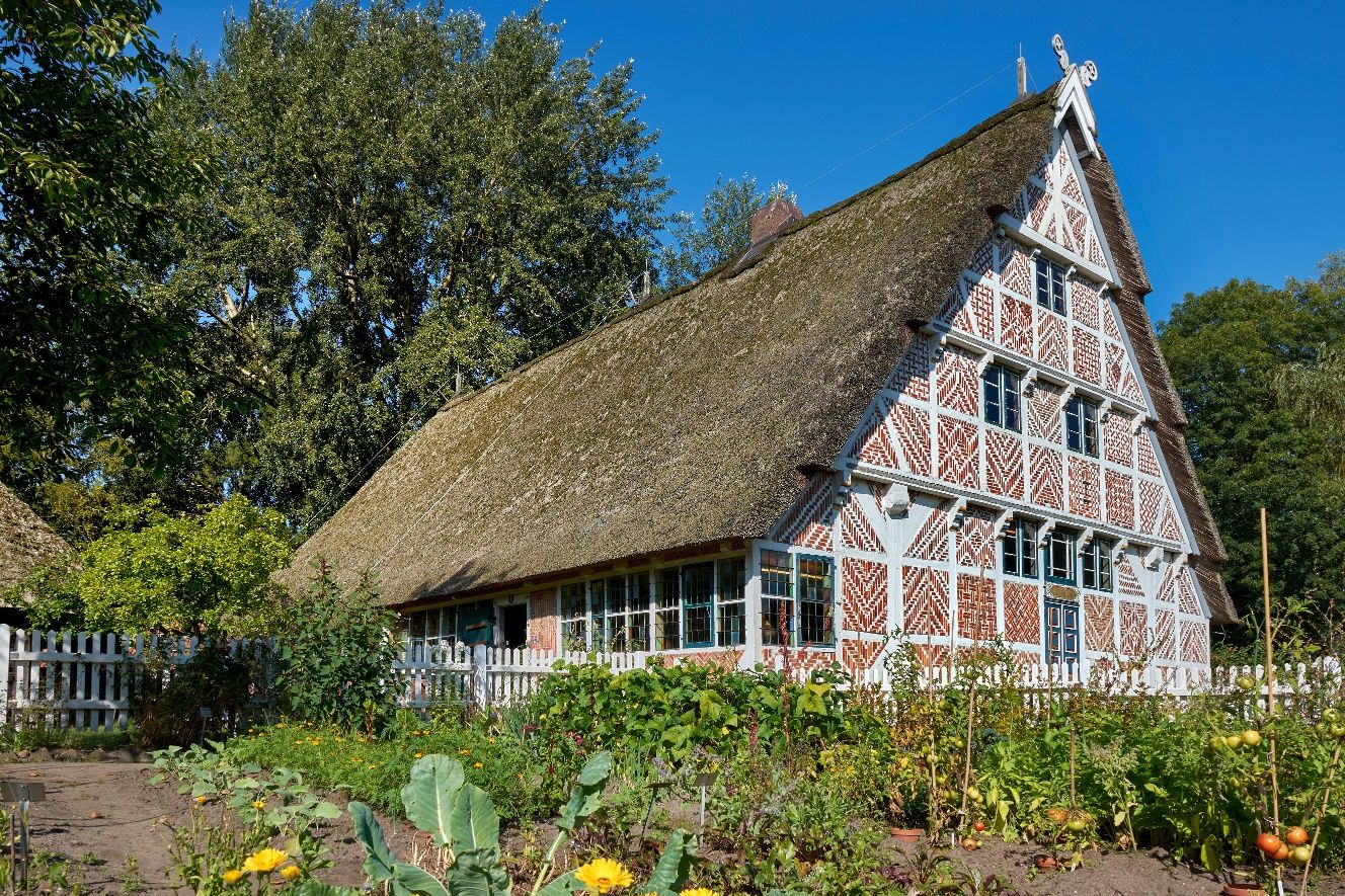 Bereits 1910 begann der "Verein für Geschichte und Altertümer" auf dem Gelände ein Freilichtmuseum zu errichten. Fachwerkhäuser aus der Region, eine Bockwindmühle, ein Göpelwerk aus dem 17. Jahrhundert bilden zusammen mit einer Altländer Prunkpforte, einem Steinbackofen, einem Wagenschauer und diversen bäucherlichen Geräten das Museumsensemble. Im sogenannten "Altländer Haus" können Besucher heute noch das ursprüngliche Inventar aus zwei Jahrhunderten bestaunen.
