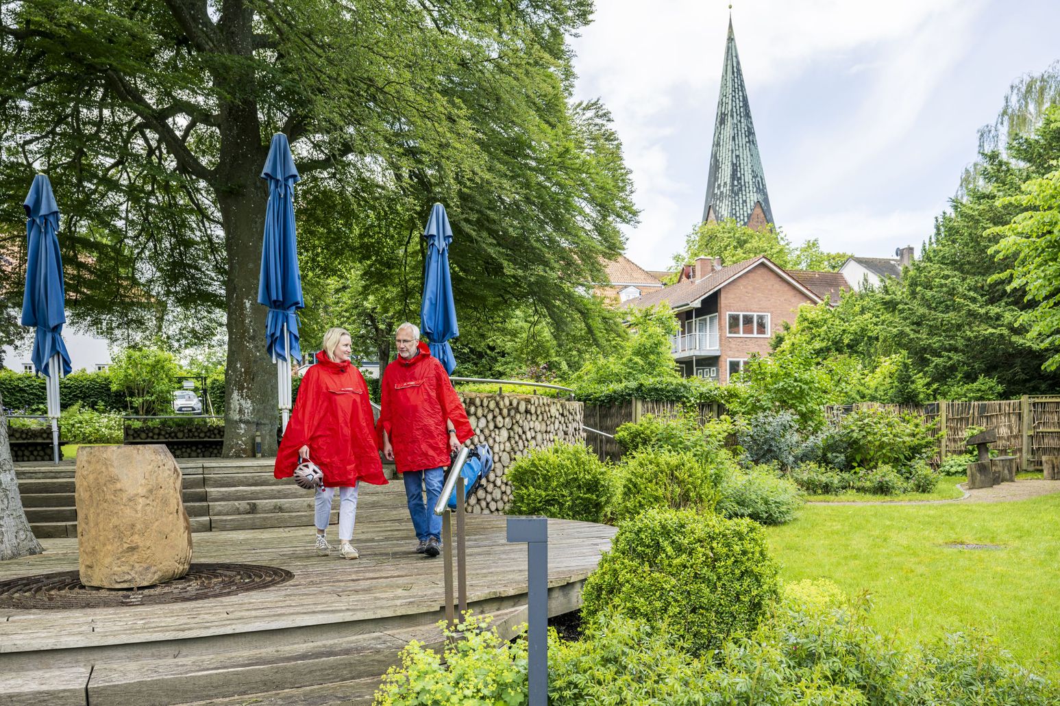 Der „Garten am frischen Wasser“ des Ev. Kirchenkreises Ostholstein in Eutin lädt Besucher ein, sich auf dem Plateau unter den 150 Jahre alten Federbuchen niederzulassen, auf den See hinaus zu schauen und Körper und Seele eine Atempause zu gönnen.