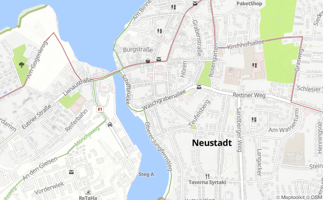 Haltestelle: Neustadt in Holstein WaschgrabenstraßeHaltestelle des öffentlichen NahverkehrsSeite merken