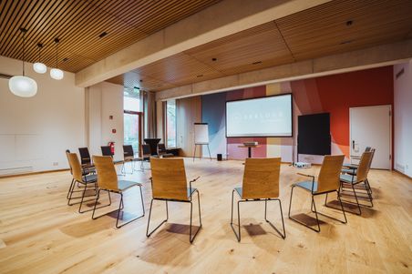 Technische Ausstattung, wie ein lichtstarker Kurzdistanz-Beamer mit beweglicher Großleinwand, Flipcharts und Moderationswände mit entsprechendem Zubehör stehen bereit. Ebenso Erfrischungen, Snacks oder die Versorgung zur Mittags- und Kaffeepause während der Tagung. Mit Vorliebe kümmern wir uns um die Unterbringung angereister Teilnehmer*innen, so dass man auch in lockerer Atmosphäre in den Abendstunden zusammen sein kann. Gern helfen wir Ihnen bei der Planung Ihrer Tagung.