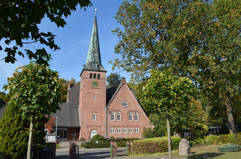 Die Pläne der Kirche hat der Kieler Architekt Johann Theede entworfen, der mit der leitenden Person des Itzehoer Baurats Strümpfler und dem Regierungsbauführer Zimmermann kooperiert hat. Ab dem Jahr 1911 wurde die Kirche errichtet und ein Jahr eingeweiht. Zunächst war sie eine Filialkirche von Münsterdorf, ist aber seit gut 50 Jahren eine eigenständige Kirchengemeinde im evangelisch-lutherischen Kirchenkreis Rantzau-Münsterdorf.