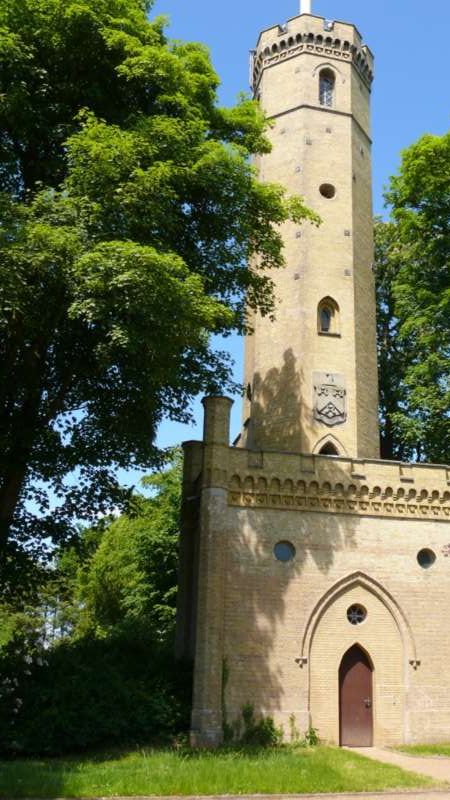 Graf Hans Heinrich zu Rantzau erbaute 1804 das nördlich vom Turm gelegene Wohnhaus und benannte es nach seiner Ehefrau Louise. Nachdem 1822 der Kaufmann Edward Ross das Anwesen erwarb, ersetzte er einen hölzernen Aussichtsturm 1858 mit dem bis heute erhaltenen Turm im Stil der Neugotik.