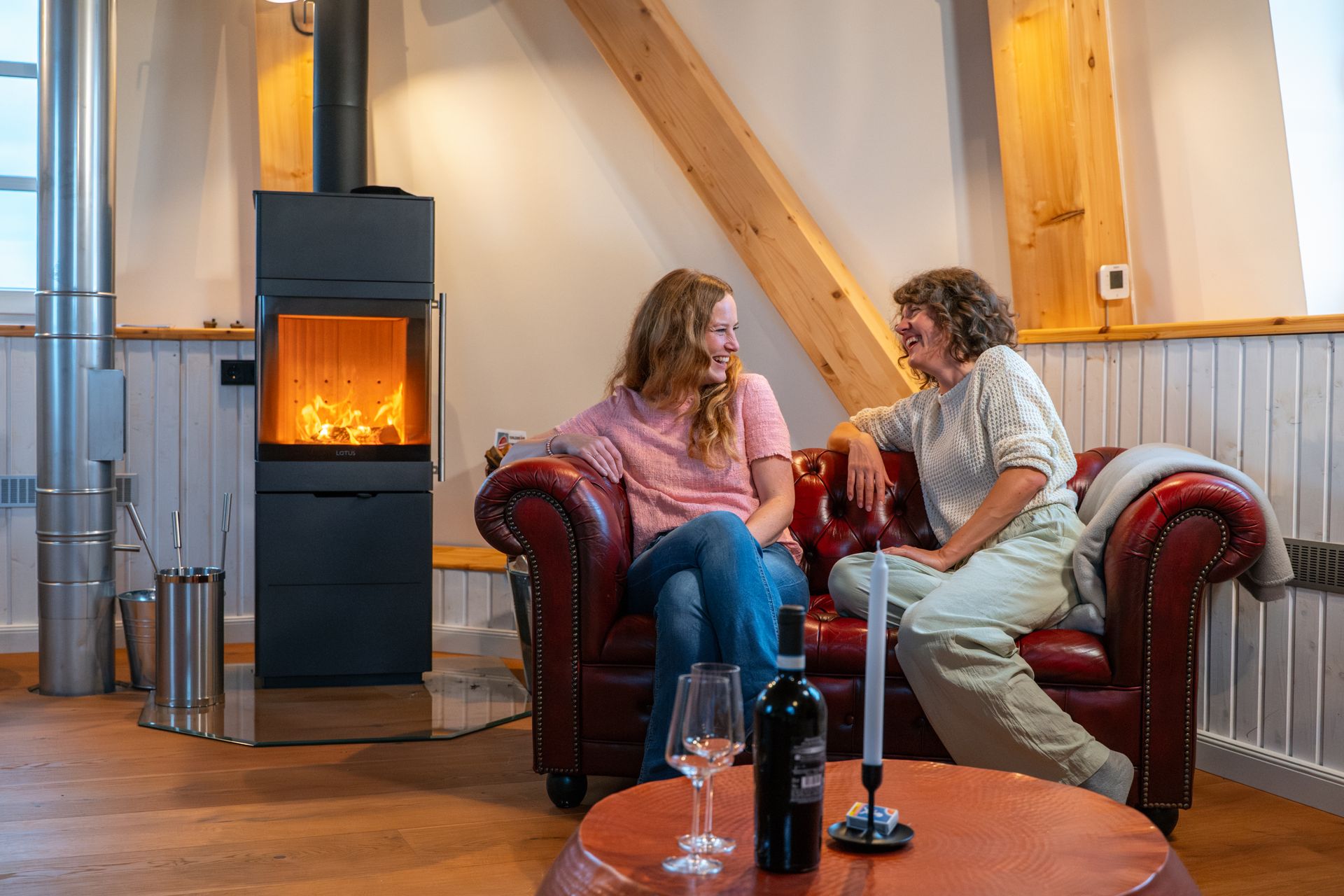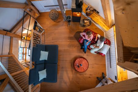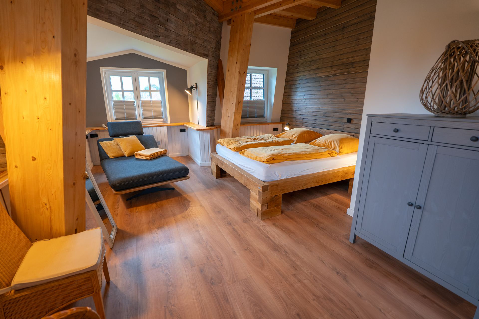 Im Inneren befindet sich eine moderne Ferienwohnung mit bis zu 5 Schlafmöglichkeiten. Es handelt sich um 2 separate Schlafzimmer und 1 Zustellbett in einem der Schlafzimmer.