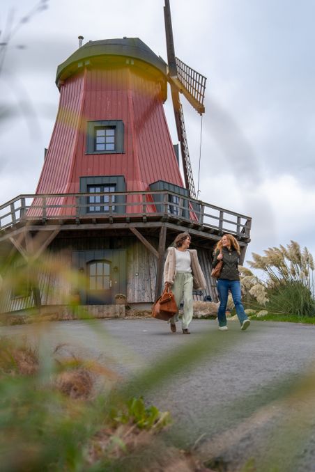 Eine ganz besondere Übernachtungsmöglichkeit findet ihr in Beidenfleth nahe Glückstadt: eine alte, komplett neu restaurierte Mühle mitten auf dem Deich!