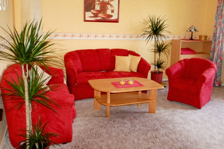 Insgesamt besteht die Ferienwohnung aus 2 Schlafzimmern (1 x mit Doppelbett, 1 x mit getrennten Betten), einem Wohnzimmer mit einer ausziehbaren Schlafcouch und Balkon, aus einer Küche sowie zwei Badezimmern mit Dusche/WC. Außerdem steht unseren Gästen ein Aufenthaltsraum mit Kamin zur Verfügung.
