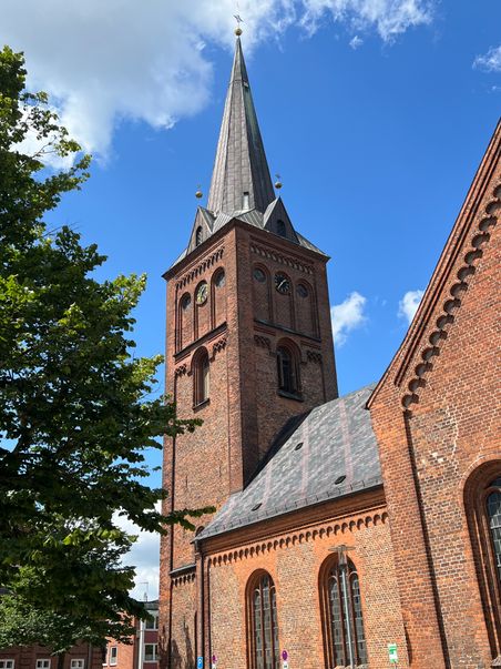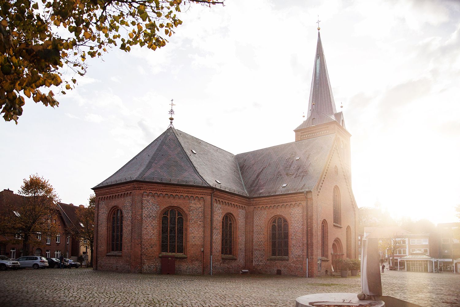 Mitten auf dem weiten Plöner Marktplatz steht der massive kreuzförmige Backsteinbau der Nikolaikirche. Ein Monument der Ruhe und Beständigkeit im geschäftigen Treiben des Alltags.