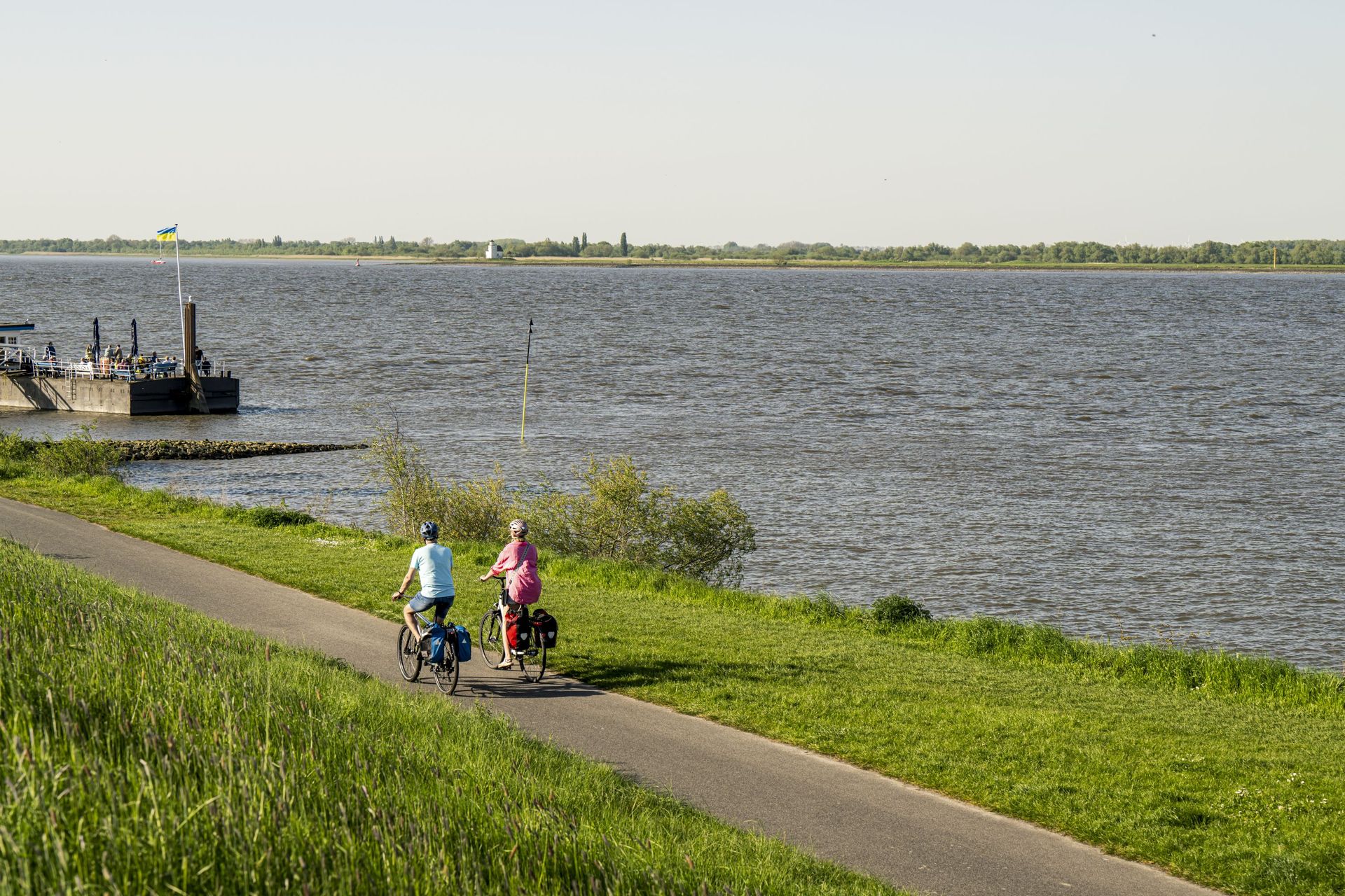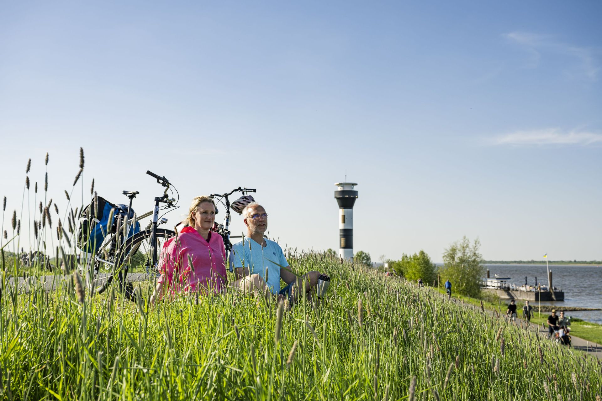 Über den Rönnedeich, der auch den Namen „Deutsche Krimistraße“ trägt, geht es weiter Richtung Elbe. Für hunderte Krimis, Thriller und Drehbücher bildet der Deich die Kulisse.