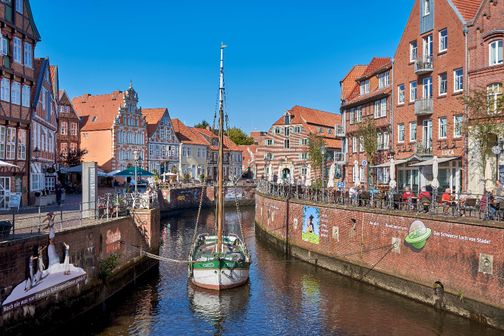 Am Ufer der Oste angelangt, lohnt ein Abstecher in den Ort Osten, wo eine der weltweit letzten Schwebefähren noch in Betrieb ist. Osten war früher eine der wohlhabendsten Gegenden in der Umgebung. Ein Zeugnis dafür liefert die prunkvolle barocke St.-Petri-Kirche.
