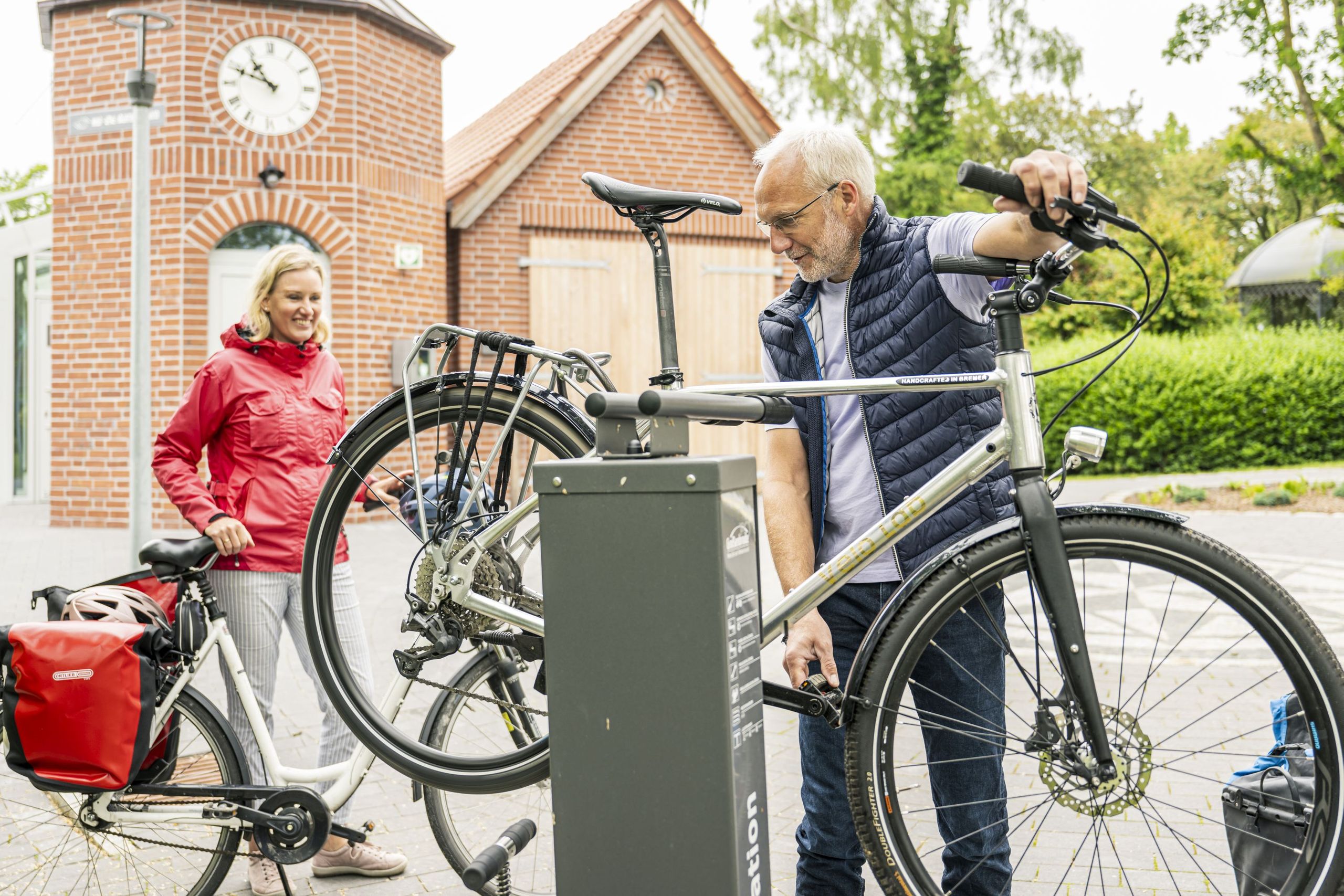 Fahrradreparaturstationen, an denen Werkzeug und Luftpumpe etc. für kleine Reparaturen rund um die Uhr verfügbar sind, finden sich entlang der gesamten Wegstrecke. Und dies nicht nur in den Städten, sondern auch in kleinen Orten, meist in Verbindung mit einem Rastplatz. Wenn es mal richtig dicke kommt, finden Sie in der Karte Fahrradbetriebe, die Reparaturdienste leisten und Ersatzteile anbieten. Außerdem zeigen wir Ihnen, wo Sie Fahrradboxen finden, in denen Sie Ihr Fahrrad mit Gepäck sicher einschließen können, um in Ruhe einen Stadtbummel zu machen oder eine Kirche zu besichtigen. Sollten Sie mit dem E-Bike unterwegs sein, gibt es natürlich auch ein stetig wachsende Anzahl an E-Bike-Ladestationen entlang des Weges.