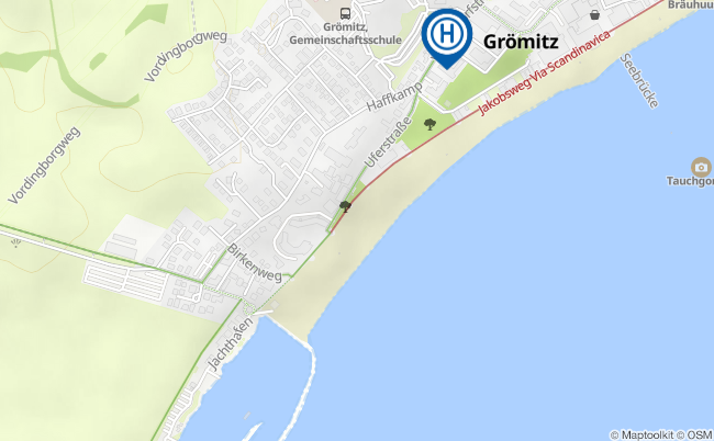 Haltestelle: Grömitz Strandallee Plane jetzt deine Reise auf nah.sh