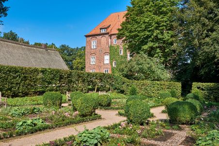 Im Schlosseintritt inbegriffen sind auch wechselnde Ausstellungen zeitgenössischer Kunst. Darüber hinaus finden im Schloss regelmäßig Führungen, Lesungen und Konzerte statt. Für eine gemütliche Pause eignet sich das Schlosscafé: Von der Aussichtsterrasse reicht der Blick bis zu den vorüberziehenden Containerschiffen auf der Elbe. Im Museumsshop finden Besucherinnen und Besucher Schönes aus der Region.