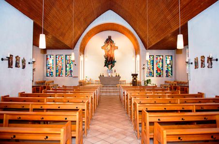 1953 wurde die Holzkirche durch ein Querschiff und 1964 das Pfarrhaus erweitert. Im Jahr 1967 wurde die Holzkirche abgerissen und eine massive, größere und gemauerte Kirche erbaut. 1978 wurde das Pfarr- und Jugendheim neugebaut.