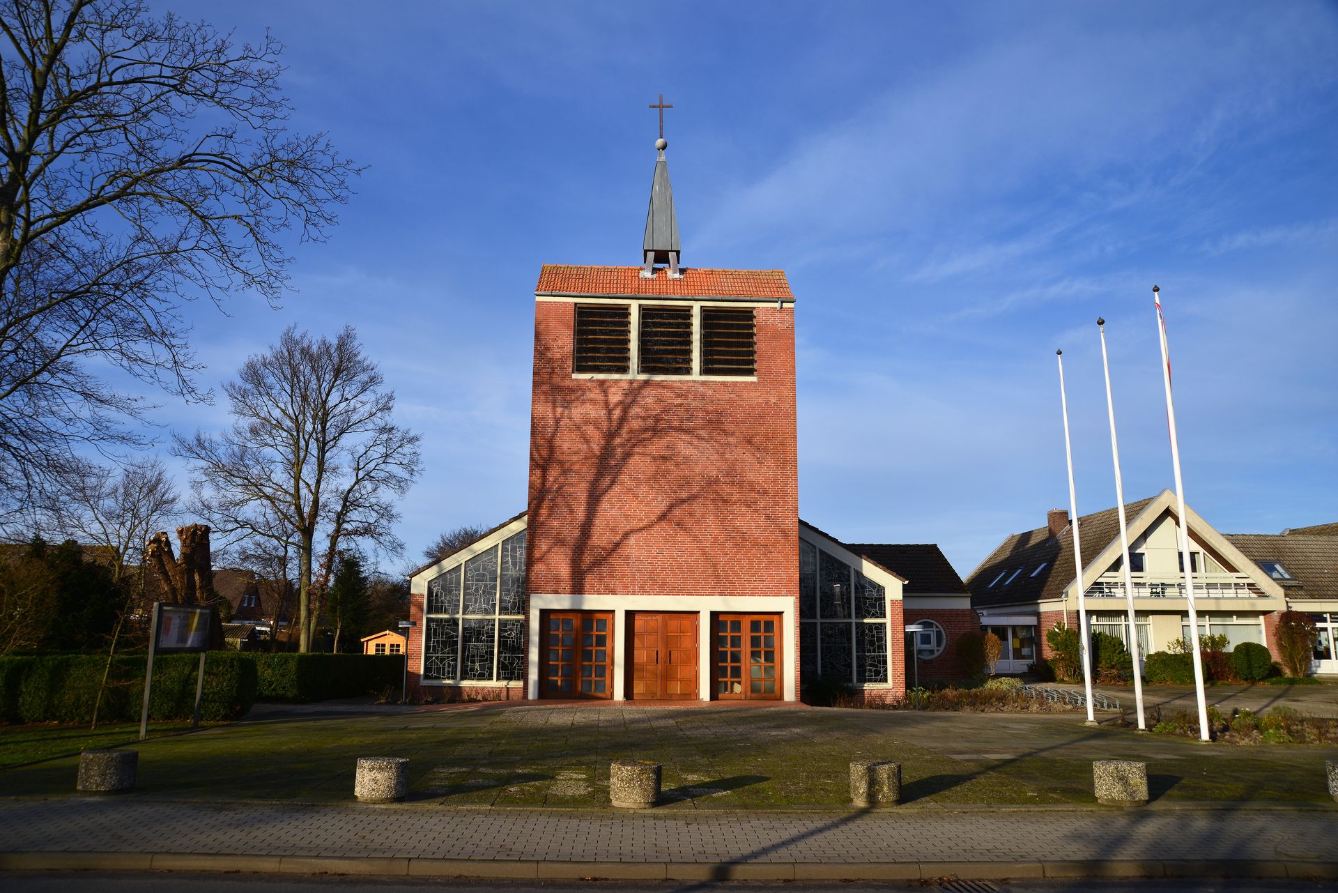 Nach Kriegsende strömten bis zu 80.000 Menschen nach Fehmarn, unter ihnen viele Katholik*innen. Es existierte allerdings keine katholische Gemeinde, Ende 1945 erreichte allerdings ein erster Pater namens Pater Merzbach die Insel und hielt Gottesdienste in Lagern oder in der St. Jürgen Kapelle ab. Im Jahr 1950 kam Pater Heidötting und war Teil einer erfolgreichen Periode. Durch die Unterstützung und Patenschaft der katholischen Jugend des Bistums Aachen konnte eine Kapelle mit knapp 80 Plätzen erbaut werden. Die römisch-katholische Kirche wurde 1954 und 1955 erbaut und am 3. Dezember 1955 geweiht.1965 wurde diese erweitert, sodass 180 Menschen Platz fanden. Im Zuge der Liturgiereform wurde der Altarraum erneuert. In den 90er-Jahren wurde die Kirche einer grundlegenden Renovierung unterzogen.