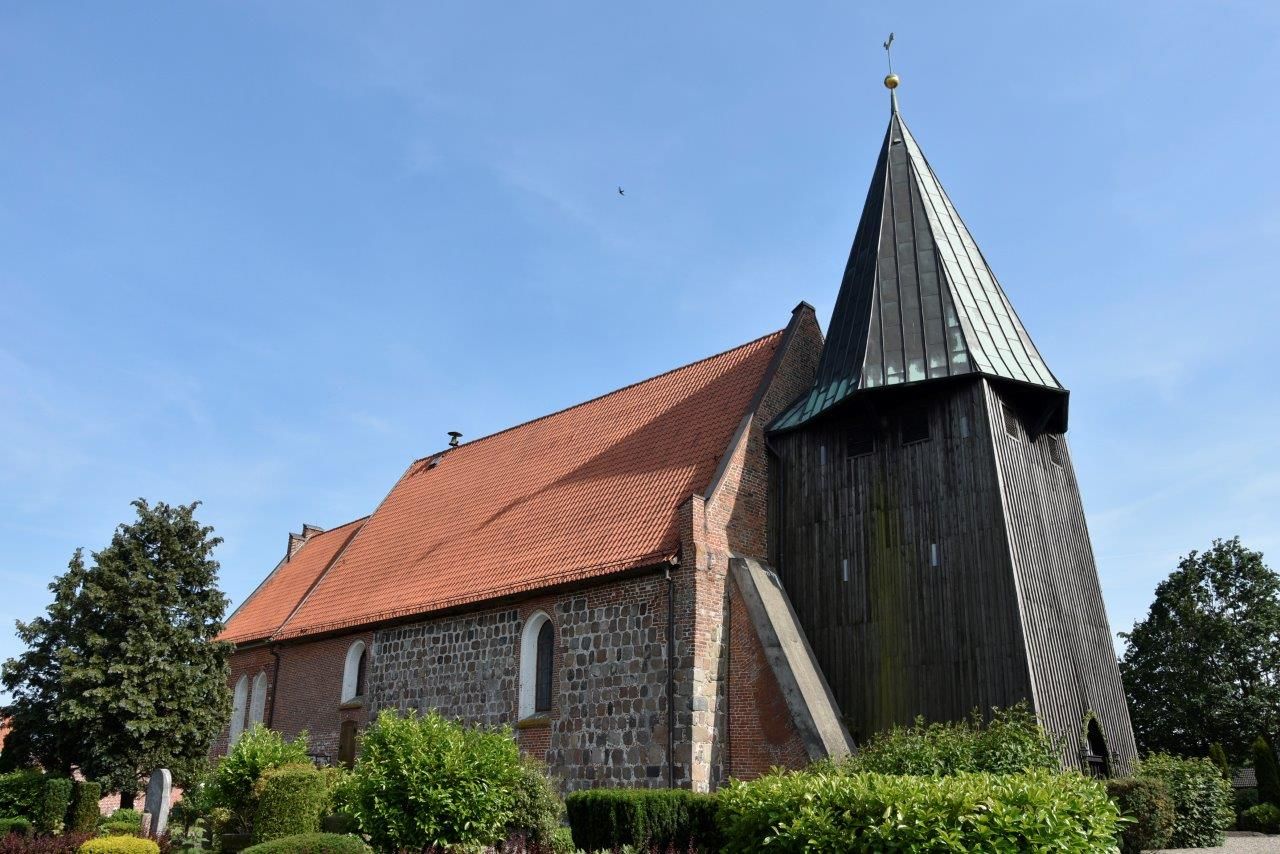 Mönche des dänischen Klosters Esrom hatten St. Johannis aus Feld- und Ziegelsteinen errichtet.Von außen sind die zwei Teile der Kirche mit der alten Sonnenuhr über dem Südeingang gut zu erkennen. Im Westen steht der hölzerne Glockenturm von 1727.