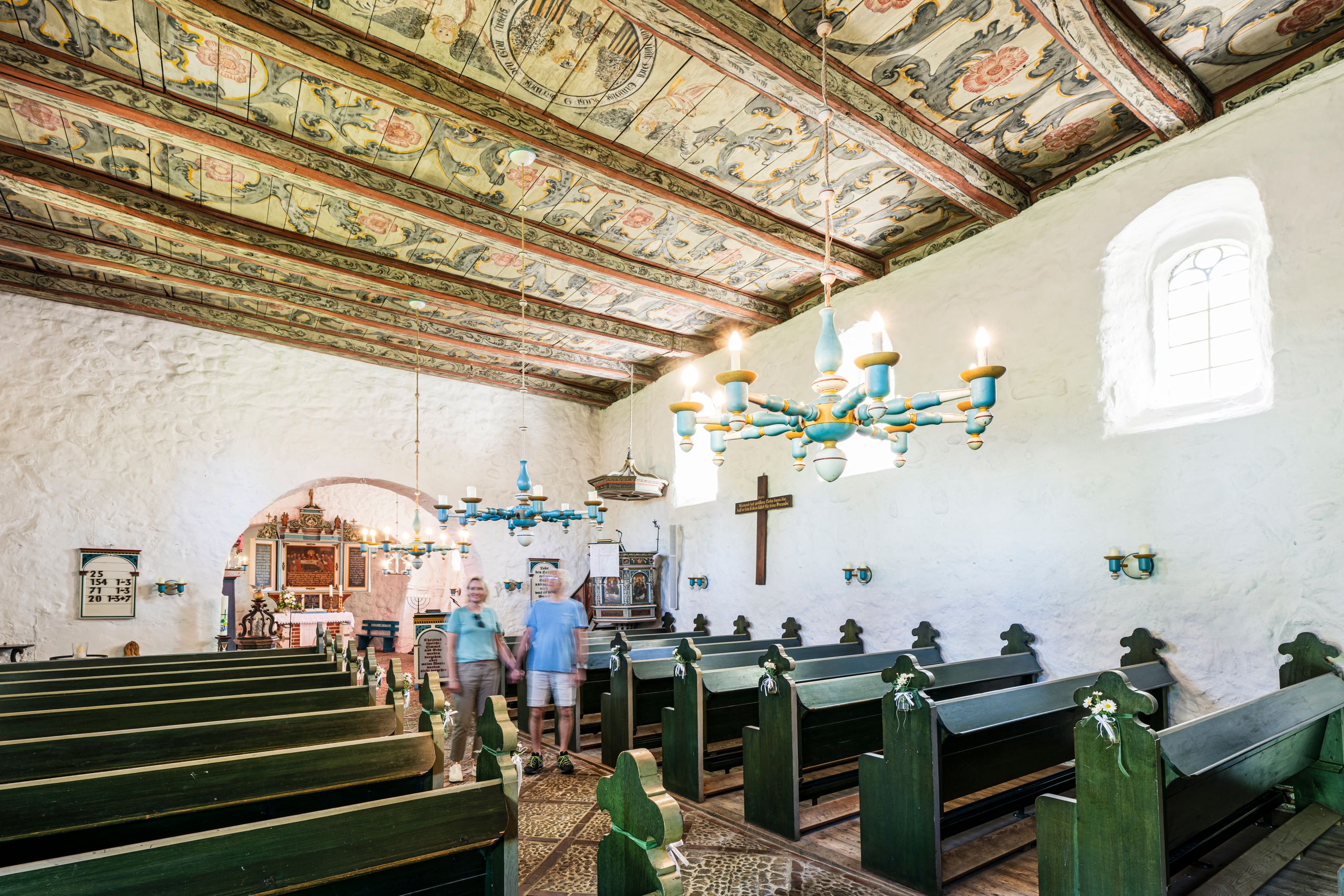 Die Katharinenkirche wurde im 12. Jahrhundert als Feldsteinkirche errichtet und zählt zu den ältesten Sakralbauten im Landkreis Stade. Besonders charakteristisch ist ihr romanischer Ursprung, der sich in den dicken Mauern und den klaren Formen widerspiegelt. Im Inneren finden sich wertvolle Ausstattungsstücke wie der barocke Altar und die farbenfrohen Deckenmalereien, die im Laufe der Jahrhunderte ergänzt und restauriert wurden.