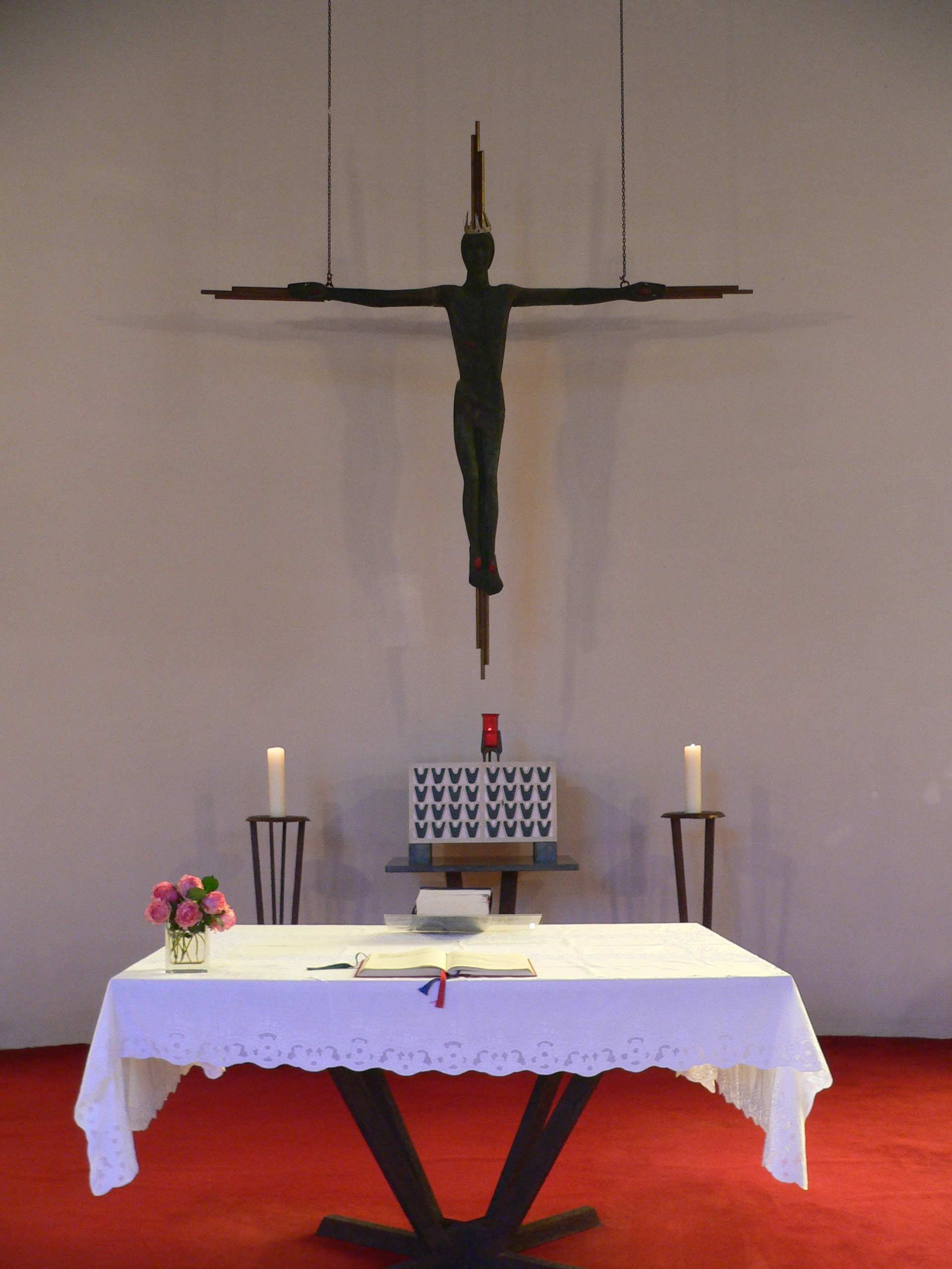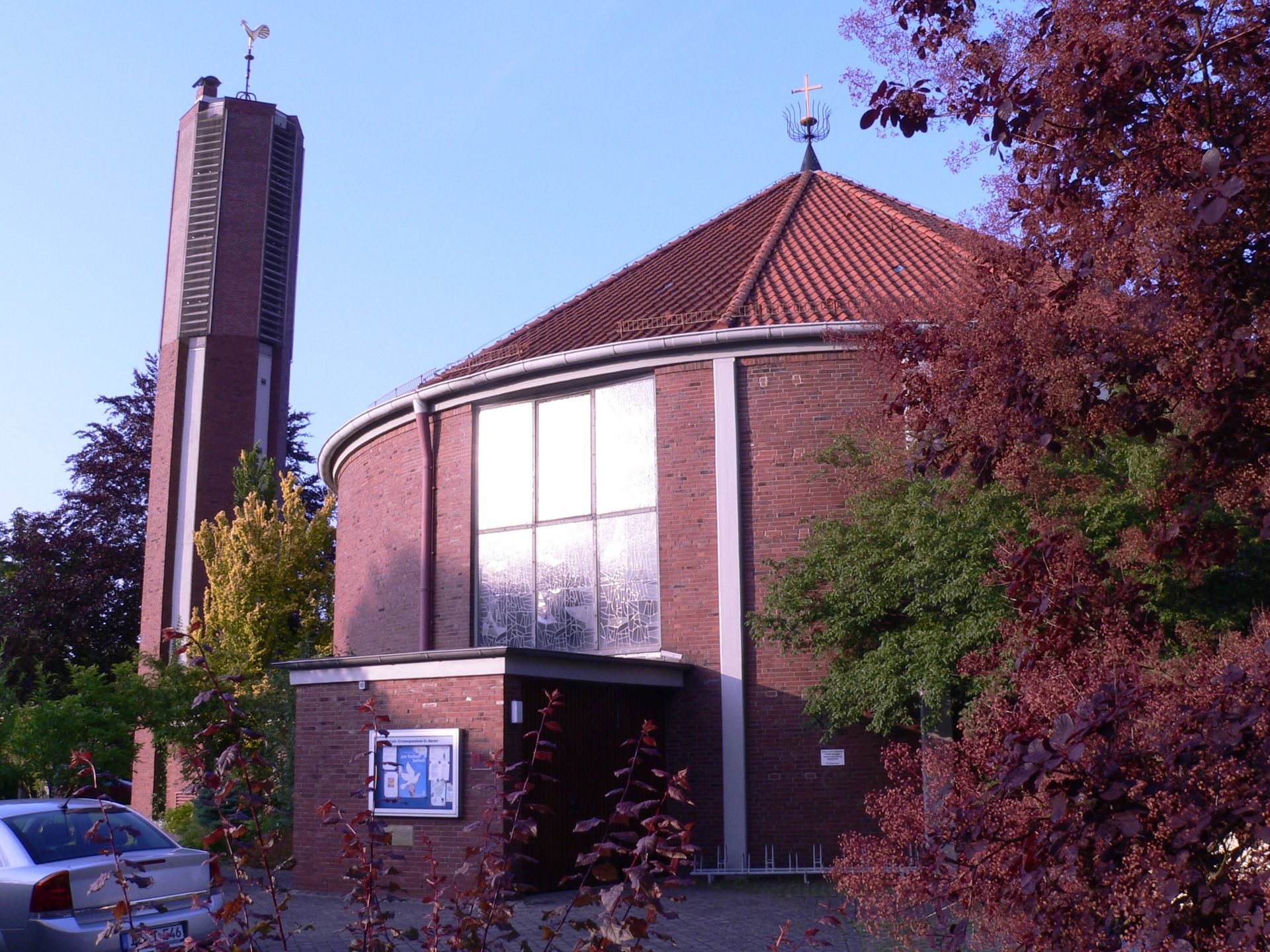 Architekt des Neubaus war der Hamburger Karlheinz Bargholz, welcher auf ein geometrisches Aussehen setzte. So ist beispielsweise der Zentralbau ein gestauchter Zylinder oder die Sakristei ein liegender Quader. Eine glatte Kirchenhülle trifft zudem auf einen vertikal gegliederten Turm. Im Inneren ist die Kirche dem Zentralbau-Gedanken nachempfunden, welcher mit dem Zweiten Vatikanischen Konzil (1962-65) erschaffen wurde. Der Altar ist somit ellipsenförmig und etwas erhöht, während die Besucher*innenbänke sich um die Rundung reihen. Die Bleiglasfenster sind deckenhoch und abstrakt gestaltet. Generell wurde die Ausstattung der 60-Jahre bis dato beibehalten, welche noch Elemente der Vorgängerkirche aufweist.