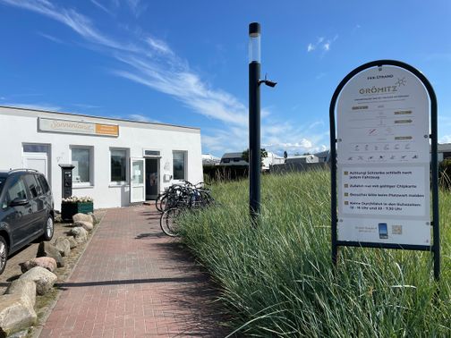 Die Seebrücke in Grömitz ragt fast 400 Meter ins Meer hinaus und ist ein beliebter Treffpunkt. Ein kleines Haus auf der Brücke bietet Schutz vor Wind. Mit der Tauchgondel können Besucher die Unterwasserwelt der Ostsee erkunden.