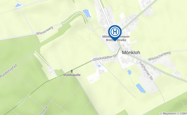 Die gut fünf Quadratmeter umfassende kleine Kapelle befindet sich im Rantzauer Forst, verortet im Hasselbuscher Wald bei Mönkloh.