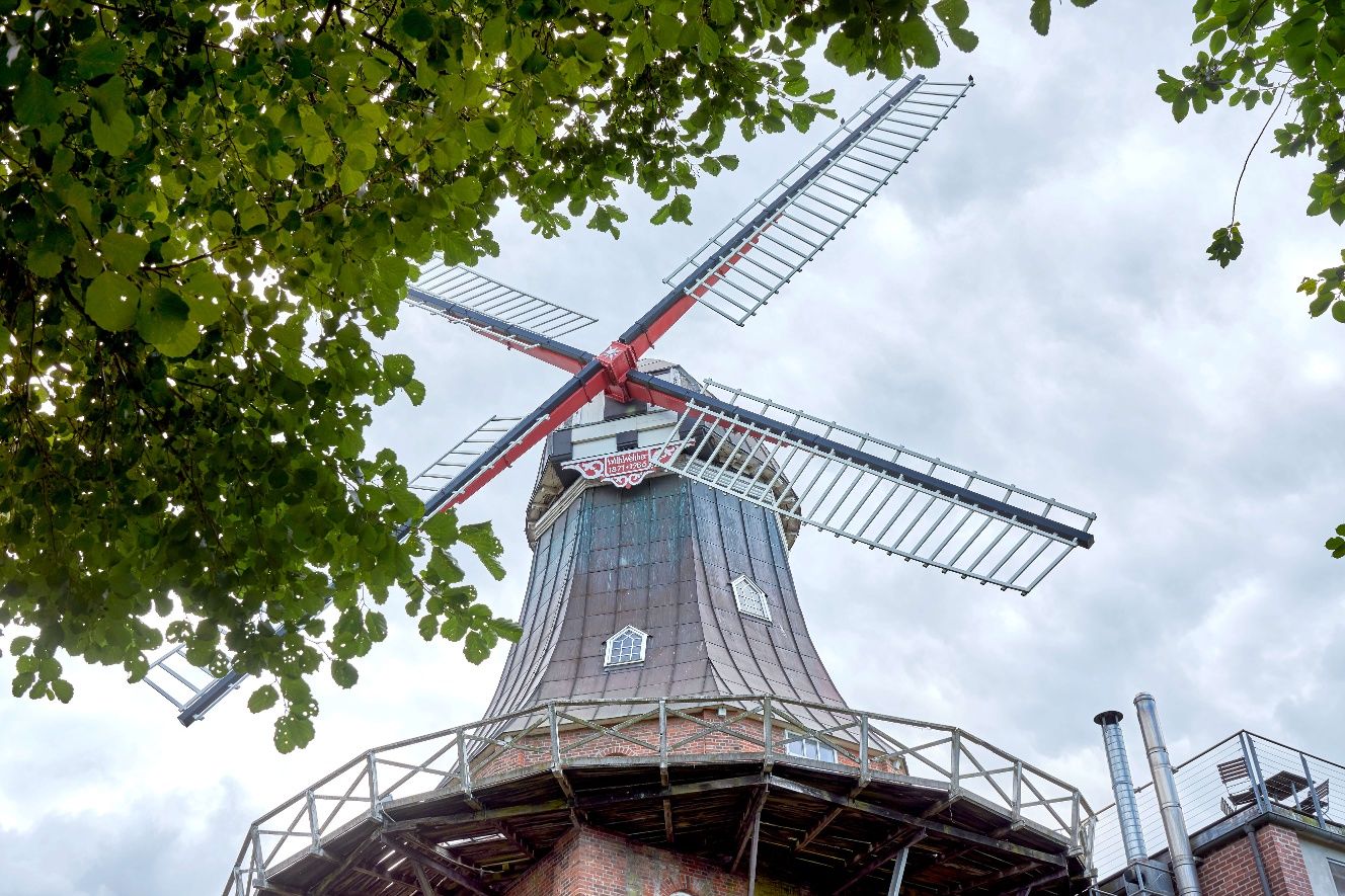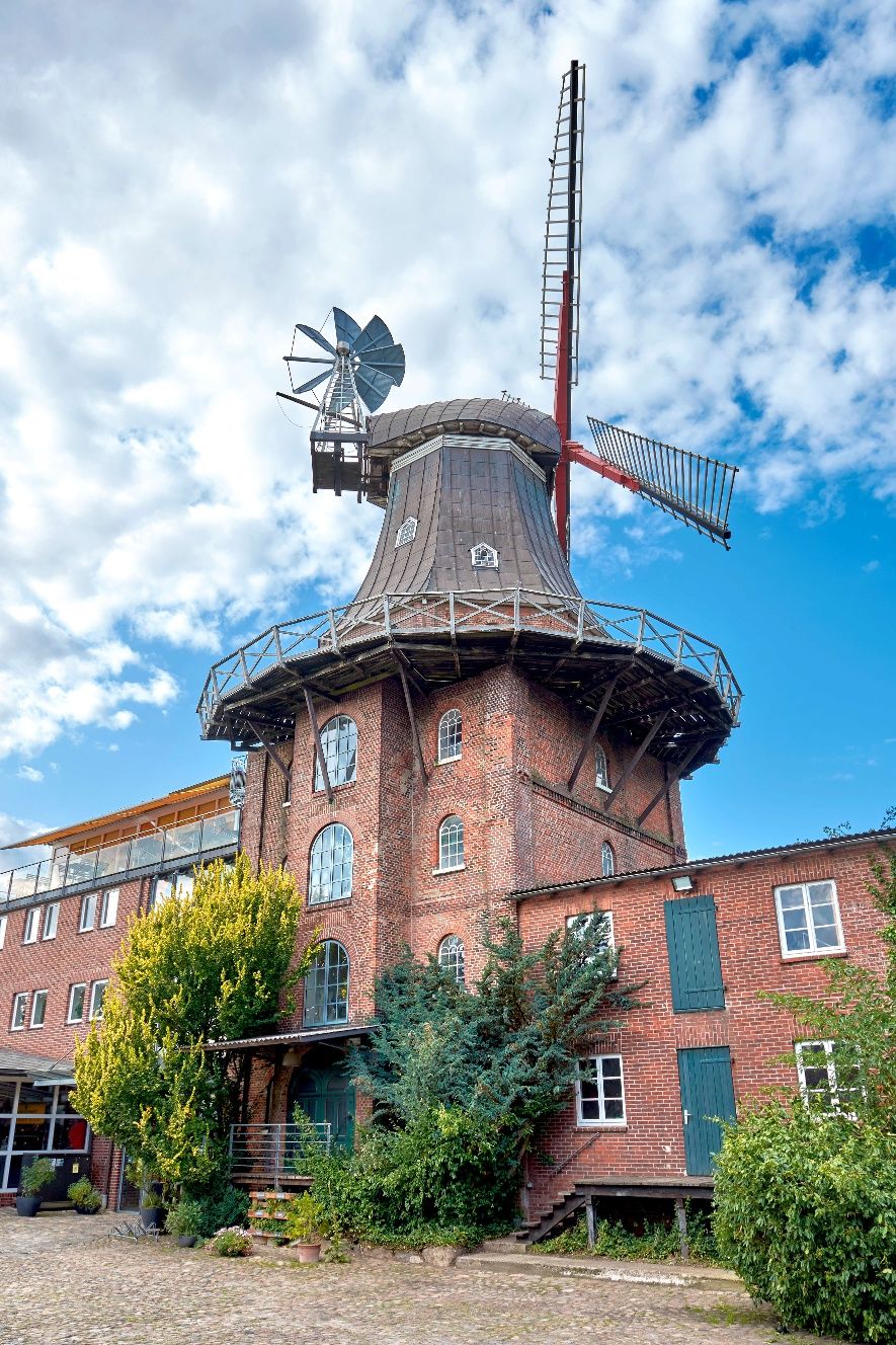 Die vierstöckige Windmühle entstand 1871 als Galerieholländer. Charakteristisch sind die verstellbaren Jalousieflügel. Historische Mahltechnik und erhaltene Bauteile verweisen auf die lange Mühlentradition.
